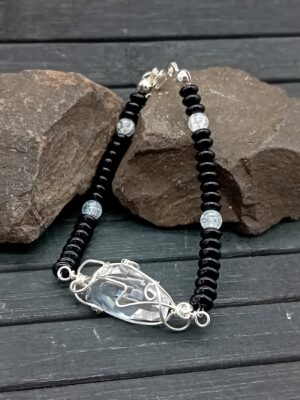 190,00 € Ursprünglicher Preis war: 190,00 €162,00 €Aktueller Preis ist: 162,00 €.Armband aus Obsidian, Bergkristall & Swarovski – mit 925 Silber.