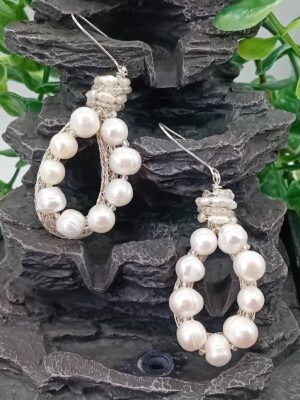 Ein außergewöhnliches Schmuckstück mit handwerklicher Raffinesse: Diese großen, runden Ohrhänger verbinden klassische Eleganz mit traditioneller Technik. Der vordere Ring aus feinen Süßwasserperlen schwebt vor einem kunstvoll von Hand gewebten Silberreif aus echtem 925 Sterling Silber.