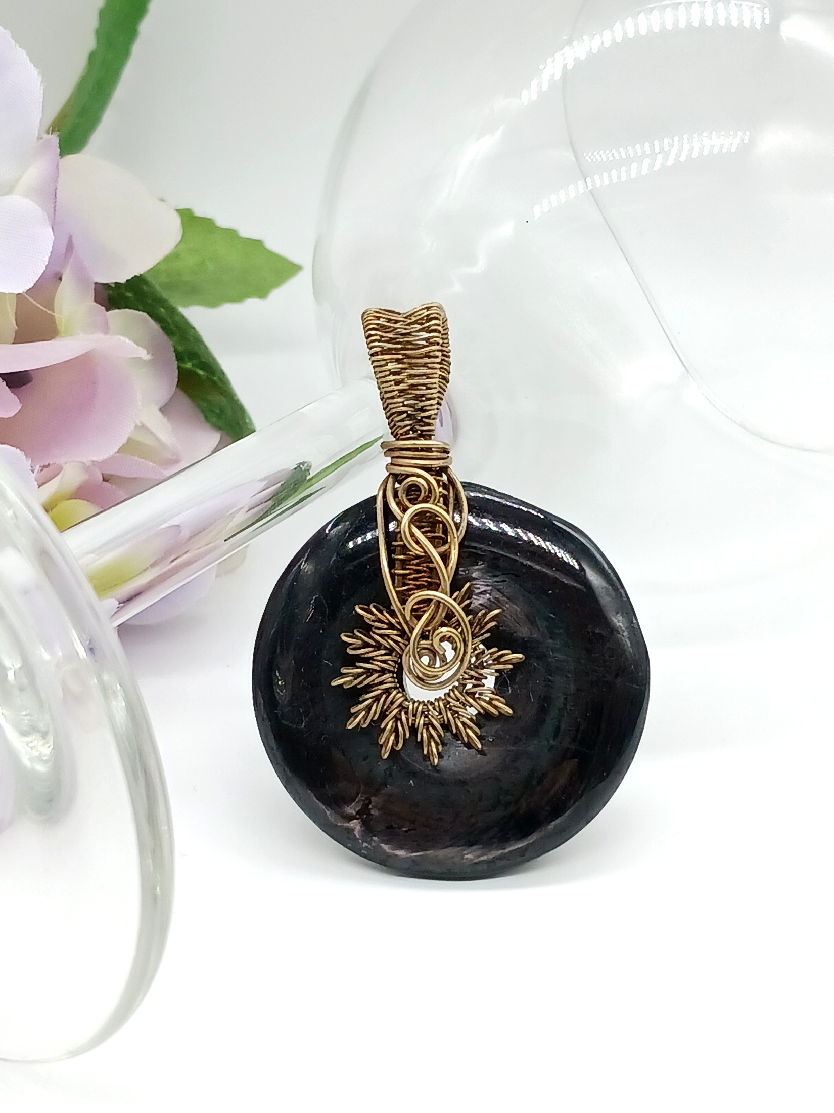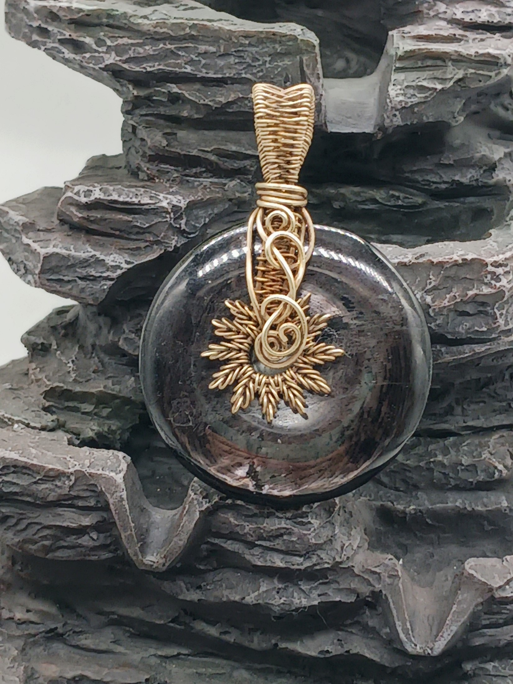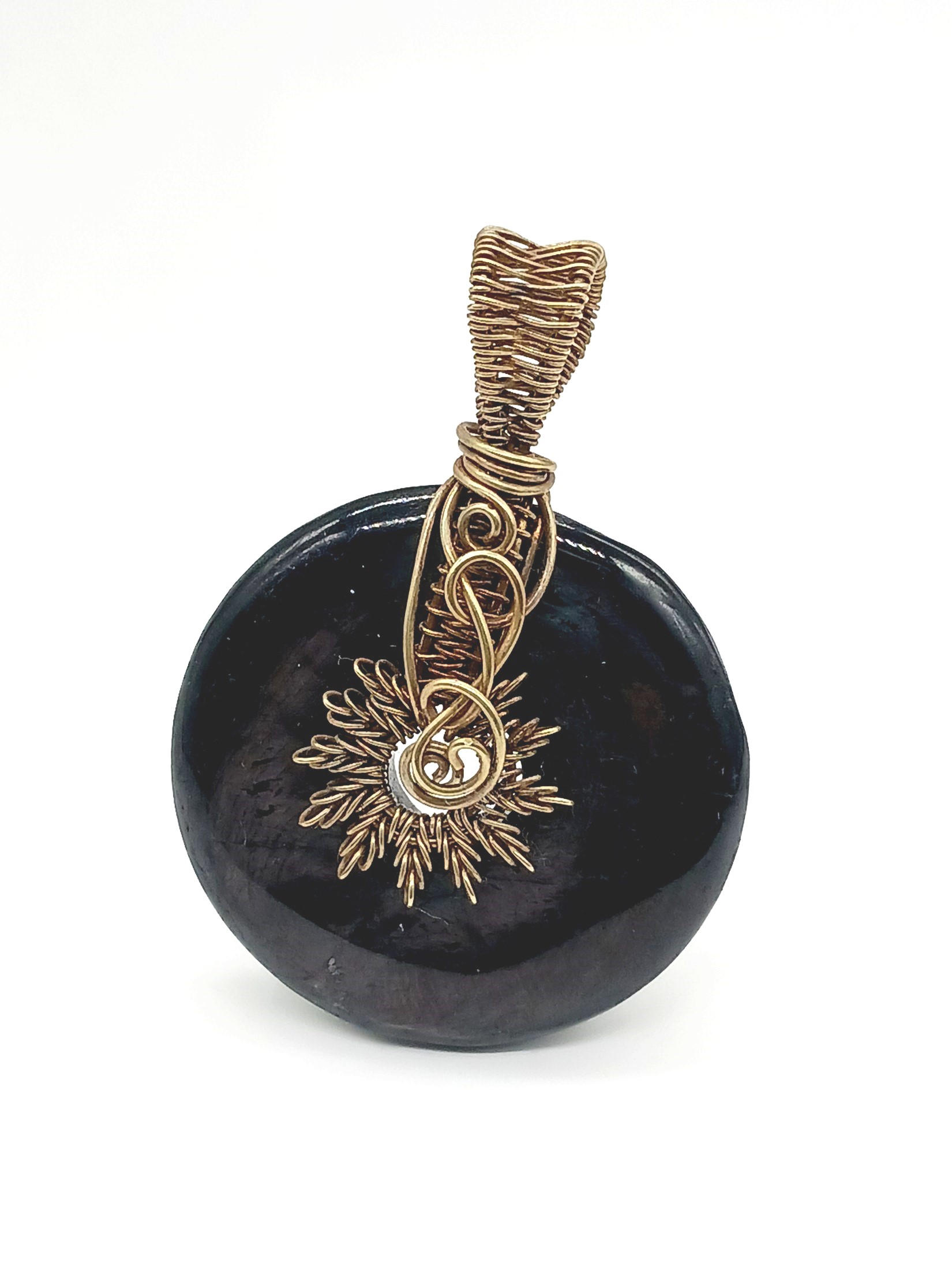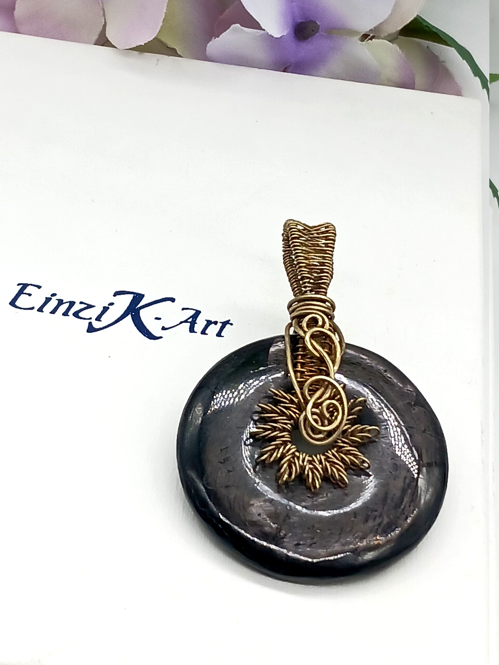 Außergewöhnlicher Anhänger Donut Hypersthen – 925 Silber / vergoldet