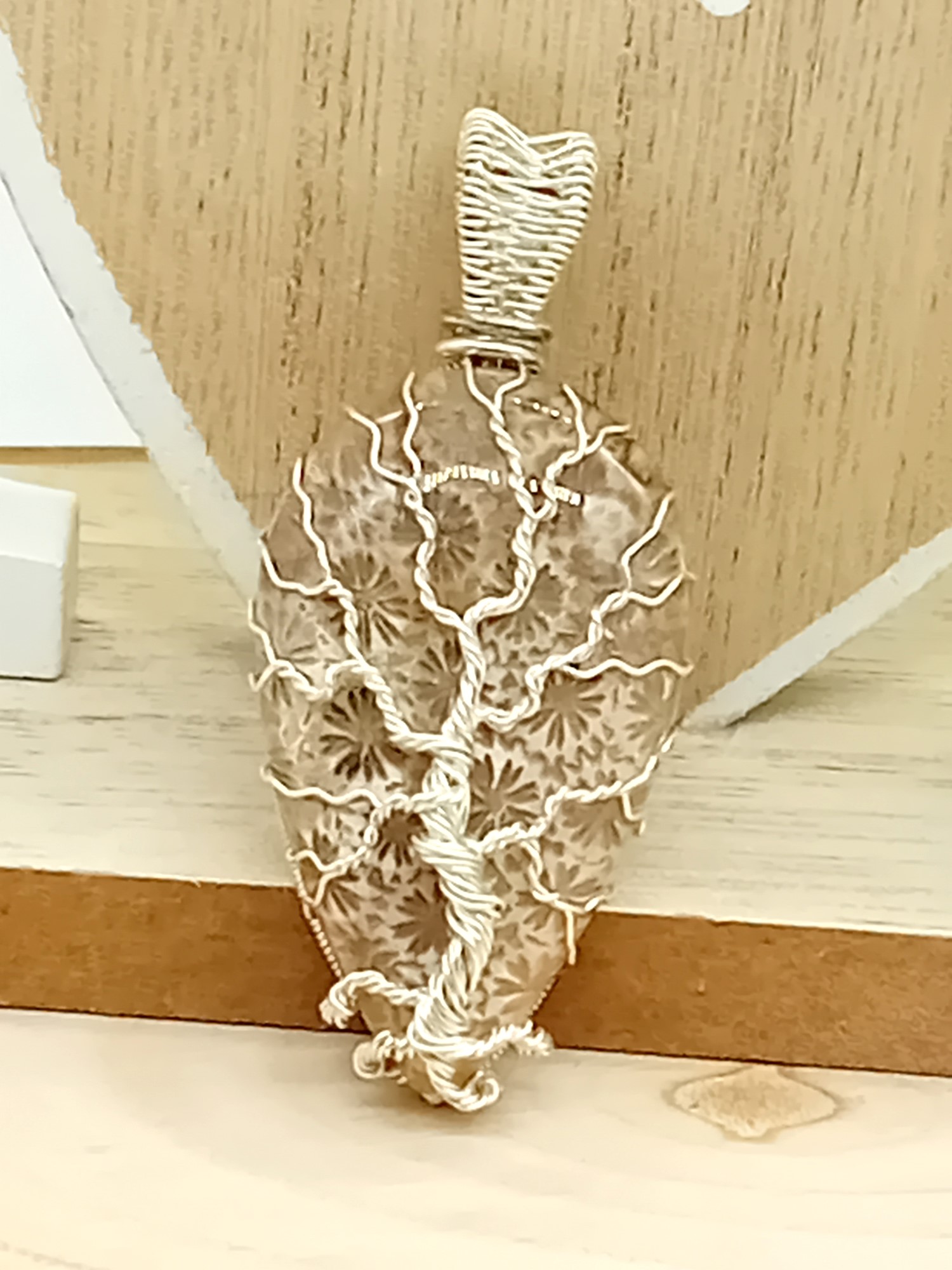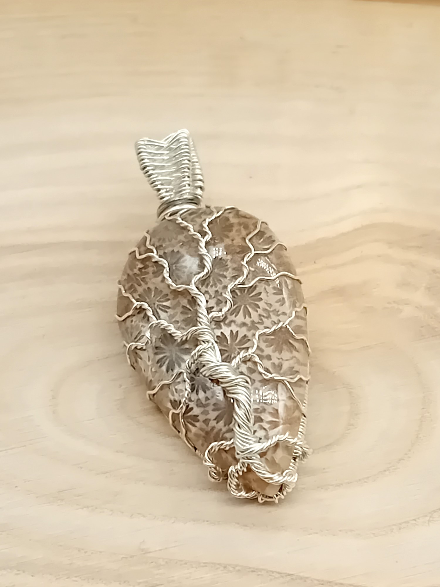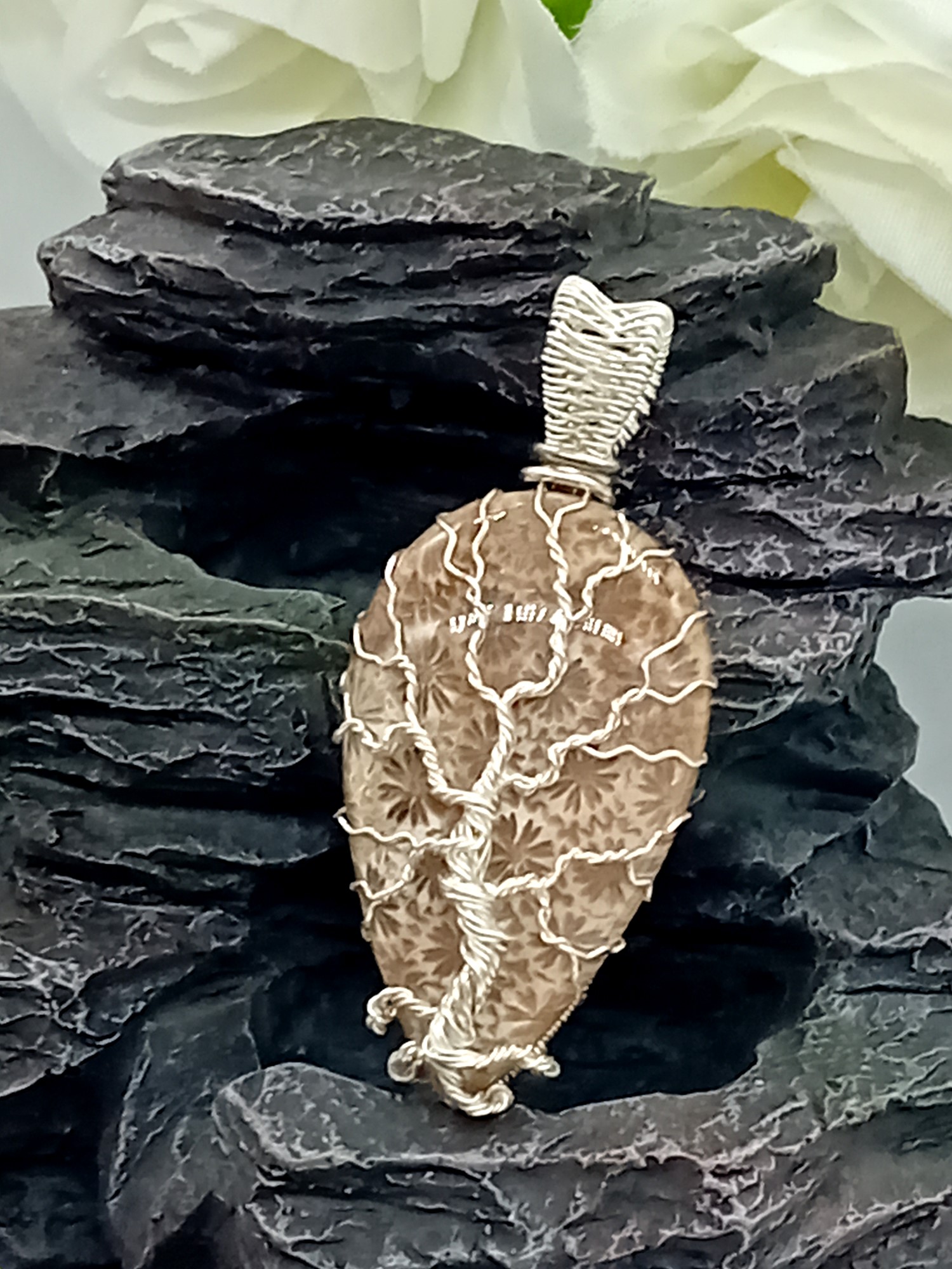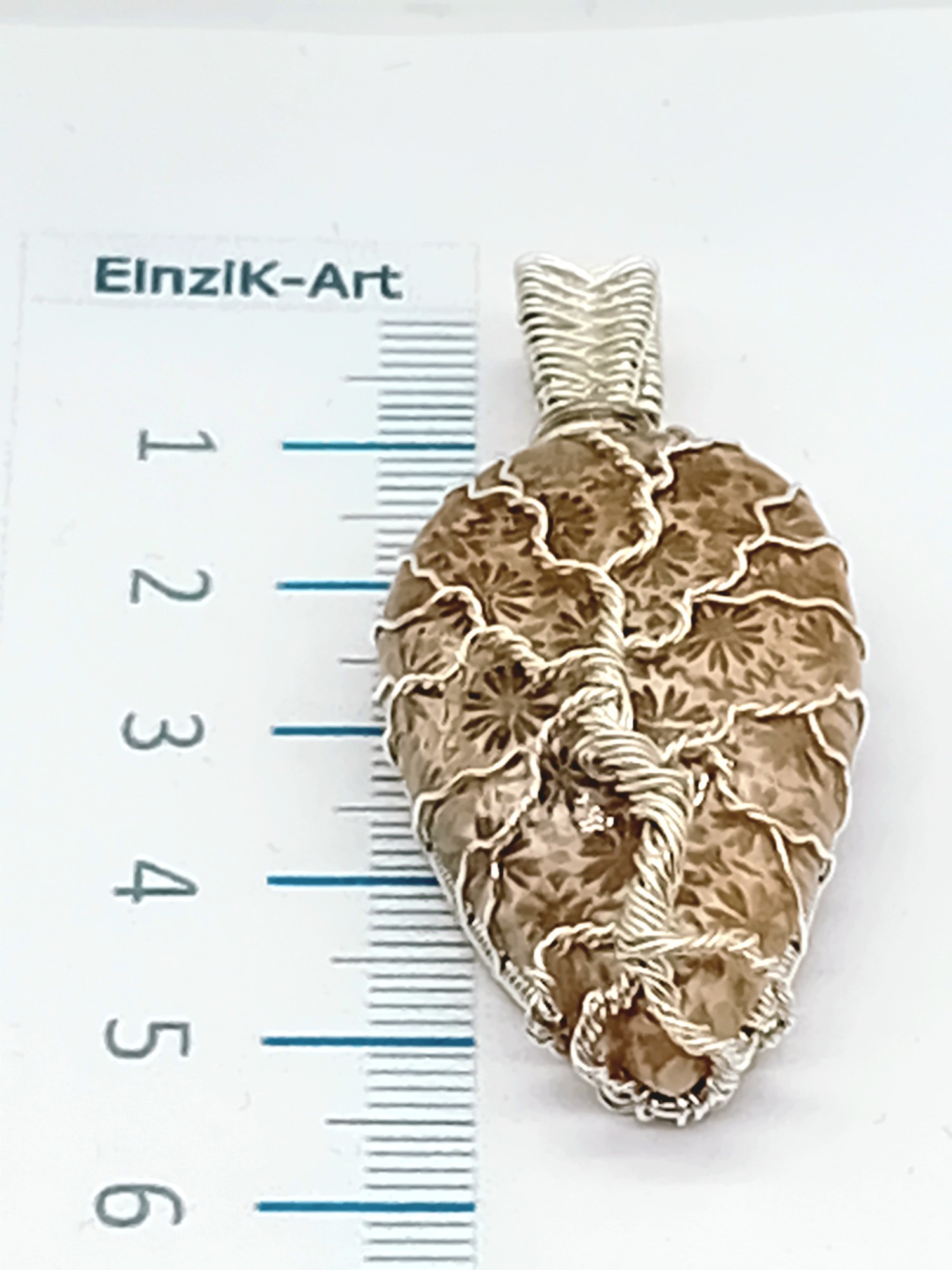 Anhänger aus fossiler Koralle – handgefertigt in 925 Silber.
