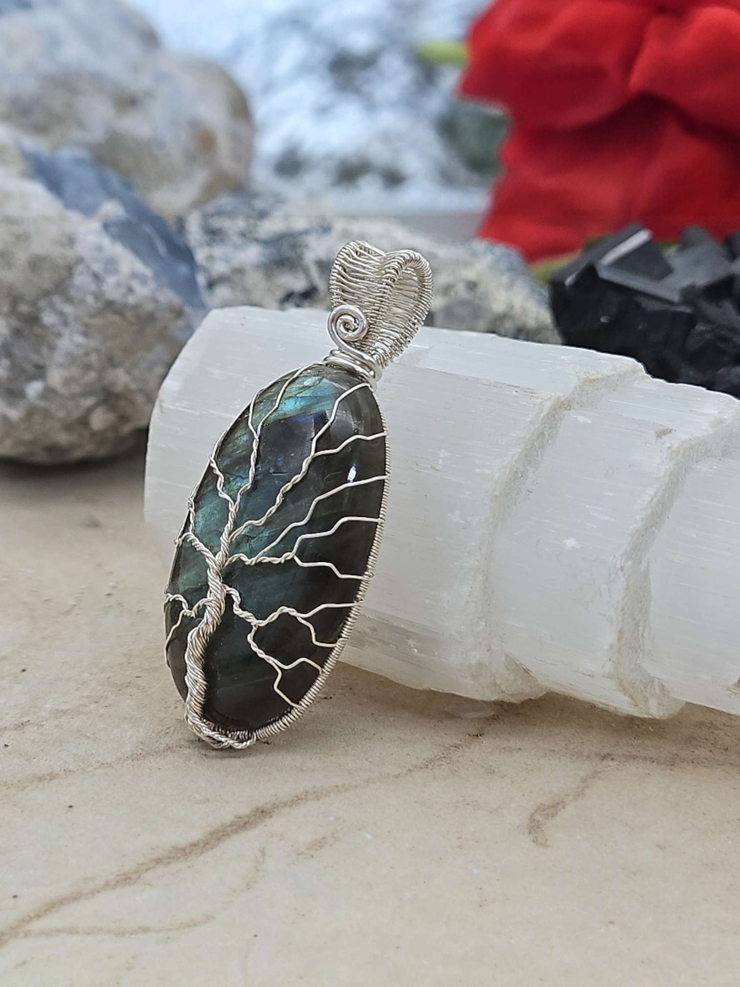 Labradorit mit Lebensbaum aus Sterlingsilber 5,6 x 2,3 cm