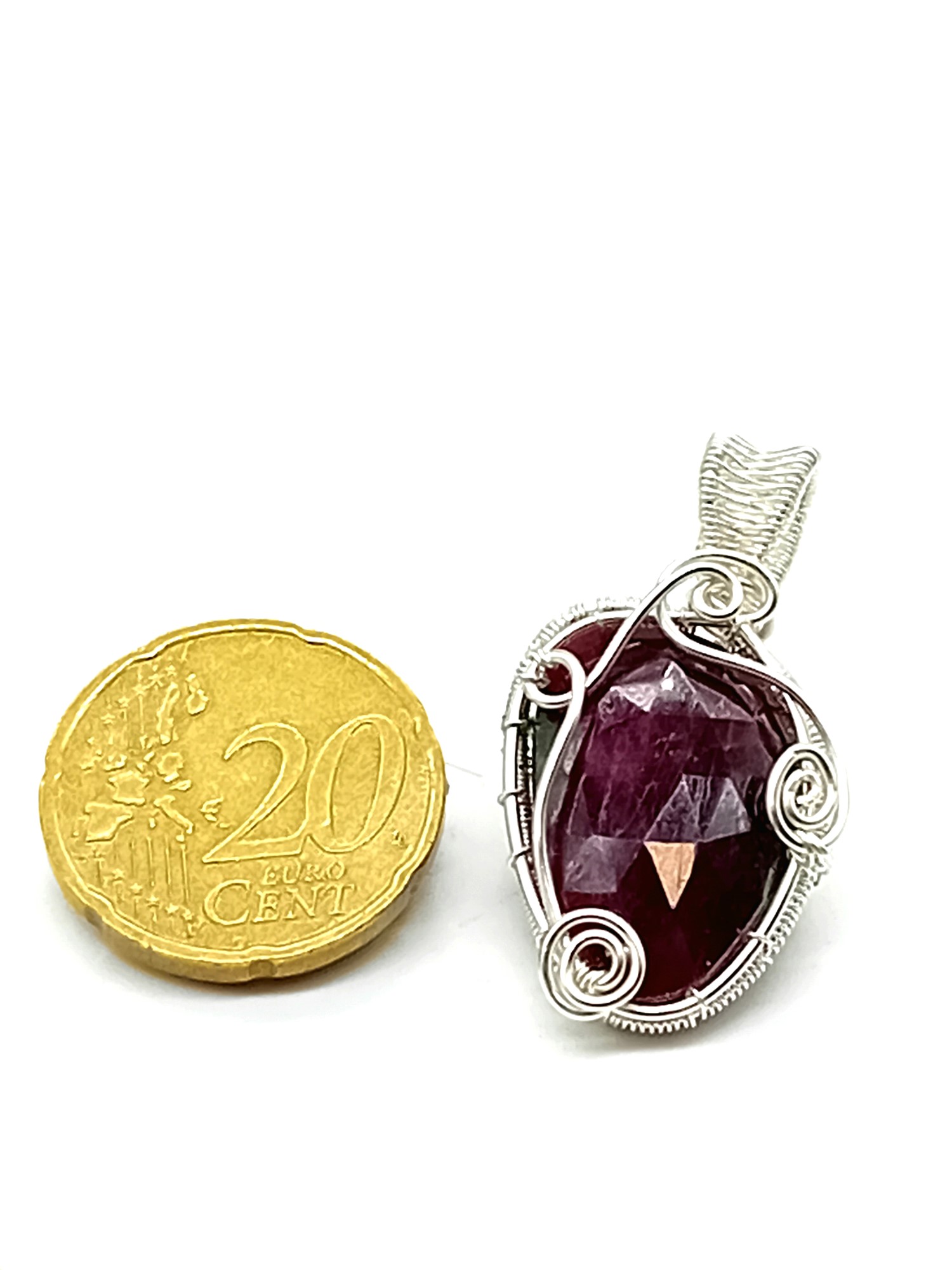 Anhänger Rubin-Zoisit im Rosecut-Schliff – handgefertigt in 925 Silber.