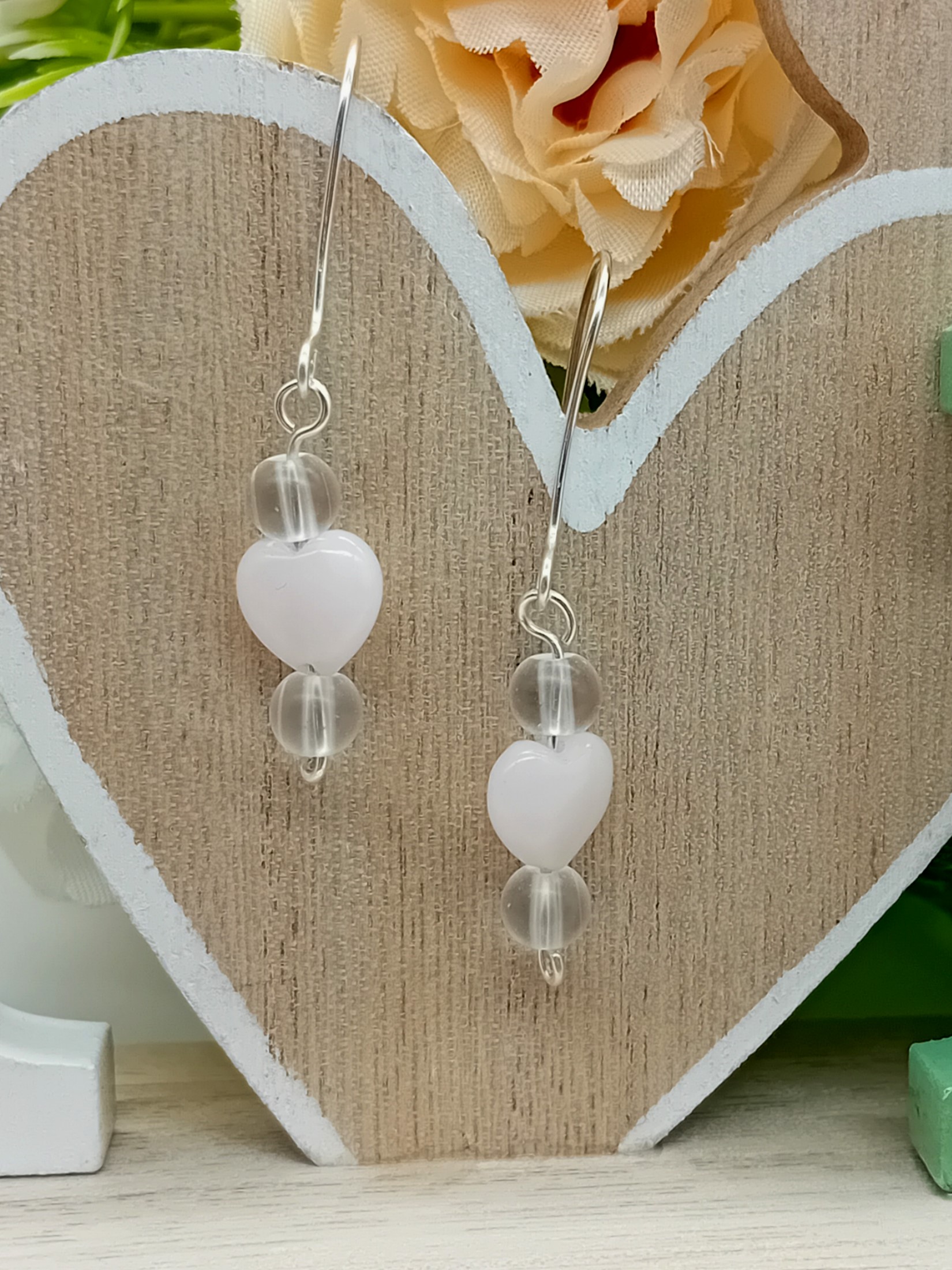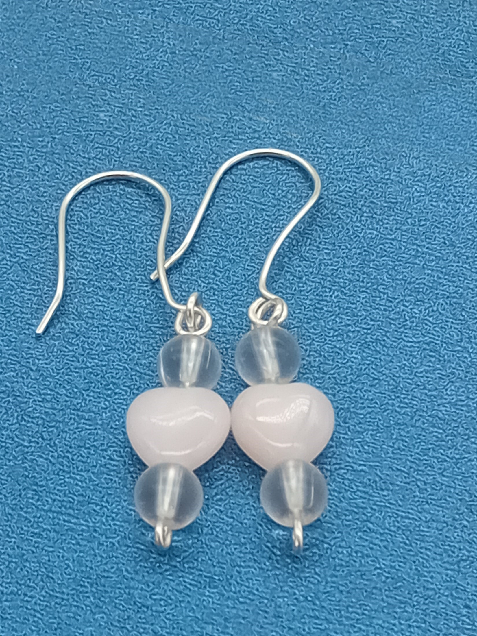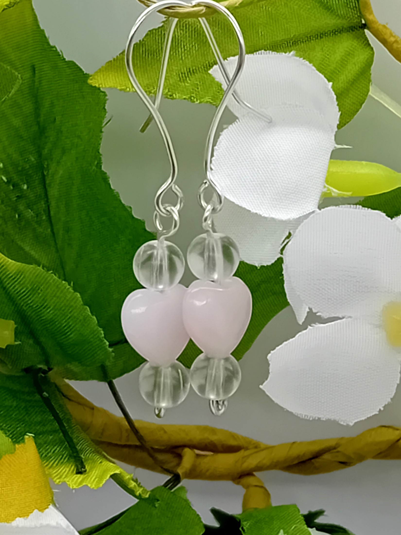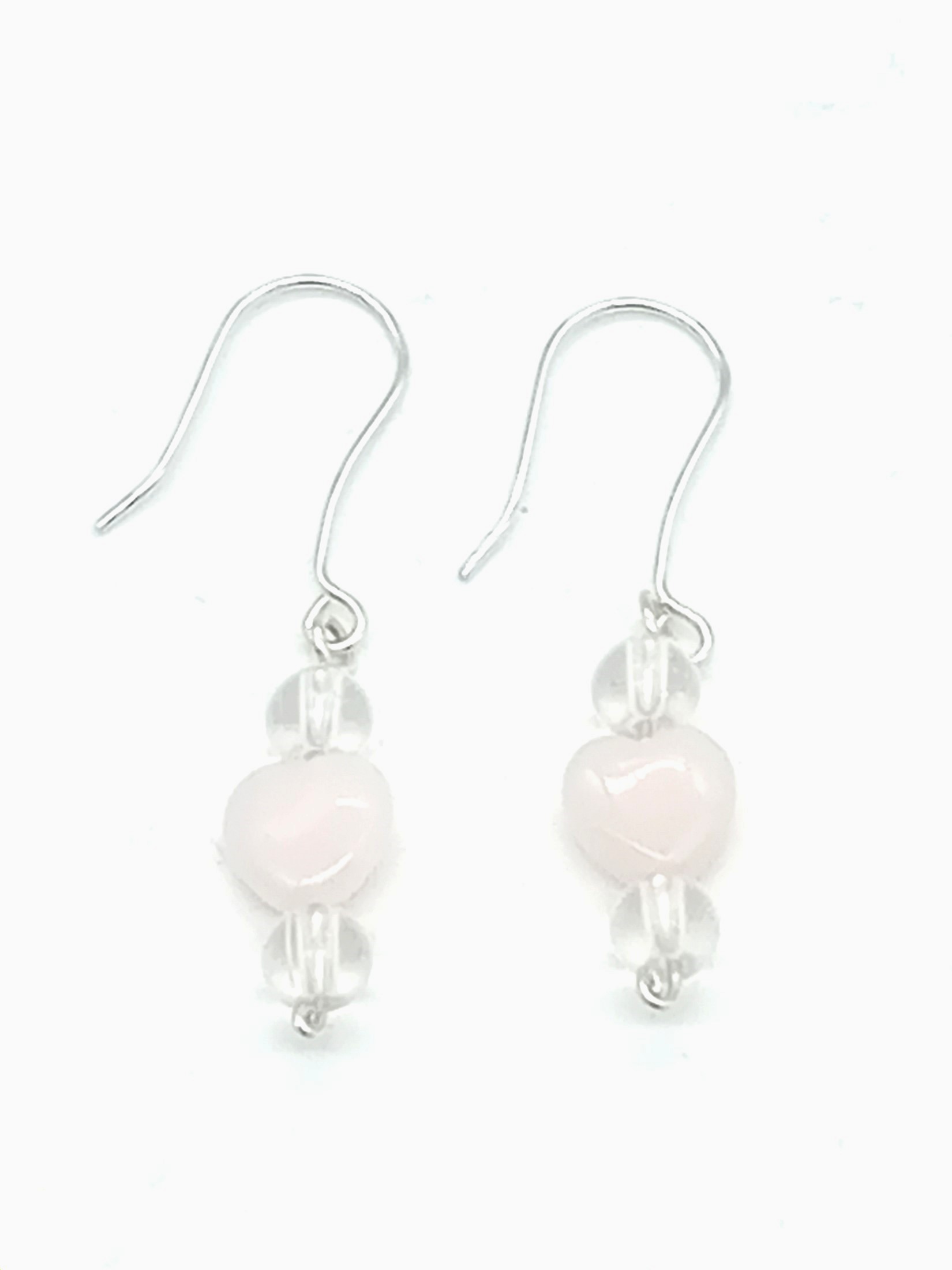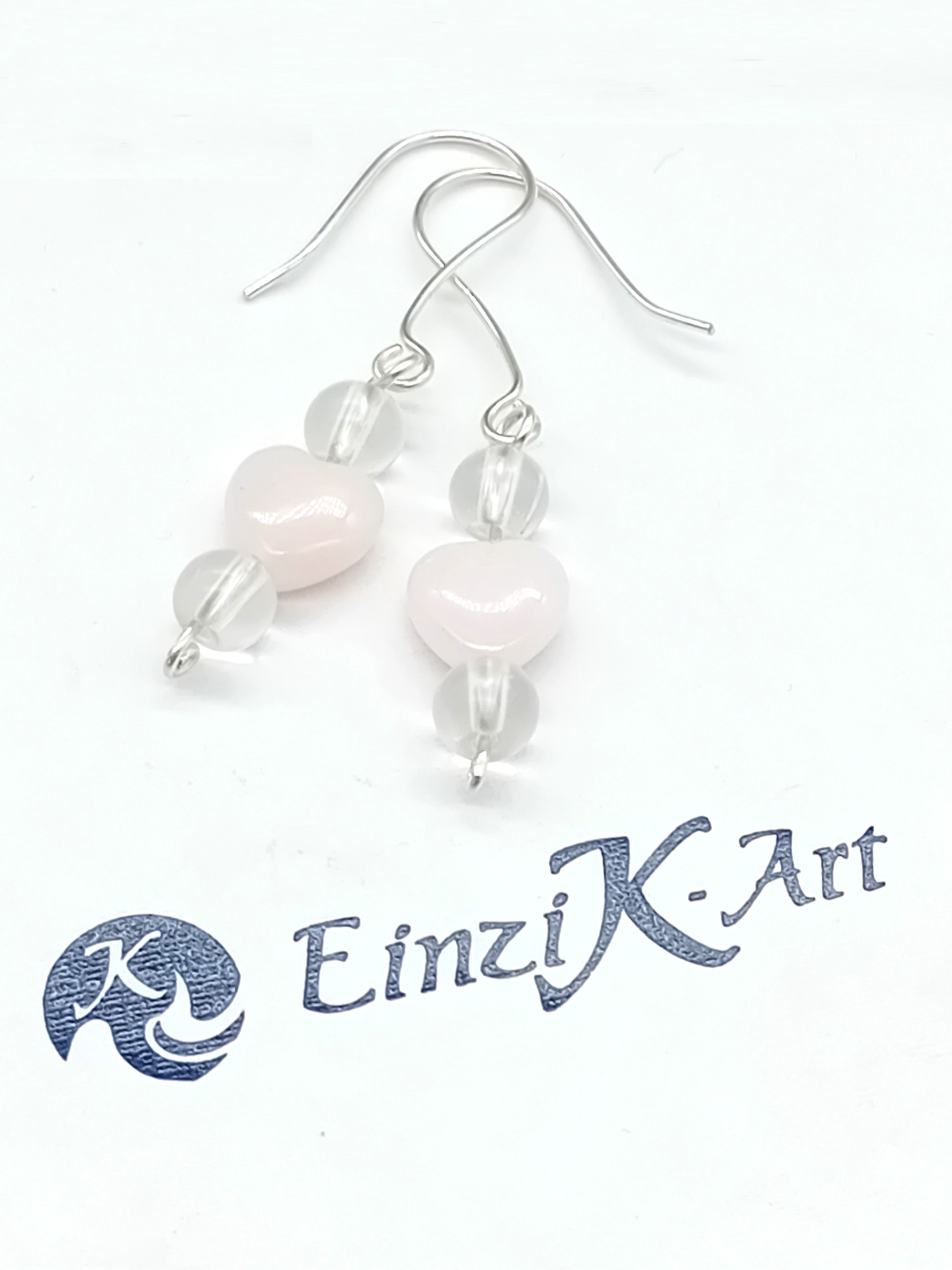 Steine: Rosenquarz (Herzform) & Bergkristall-Perlen