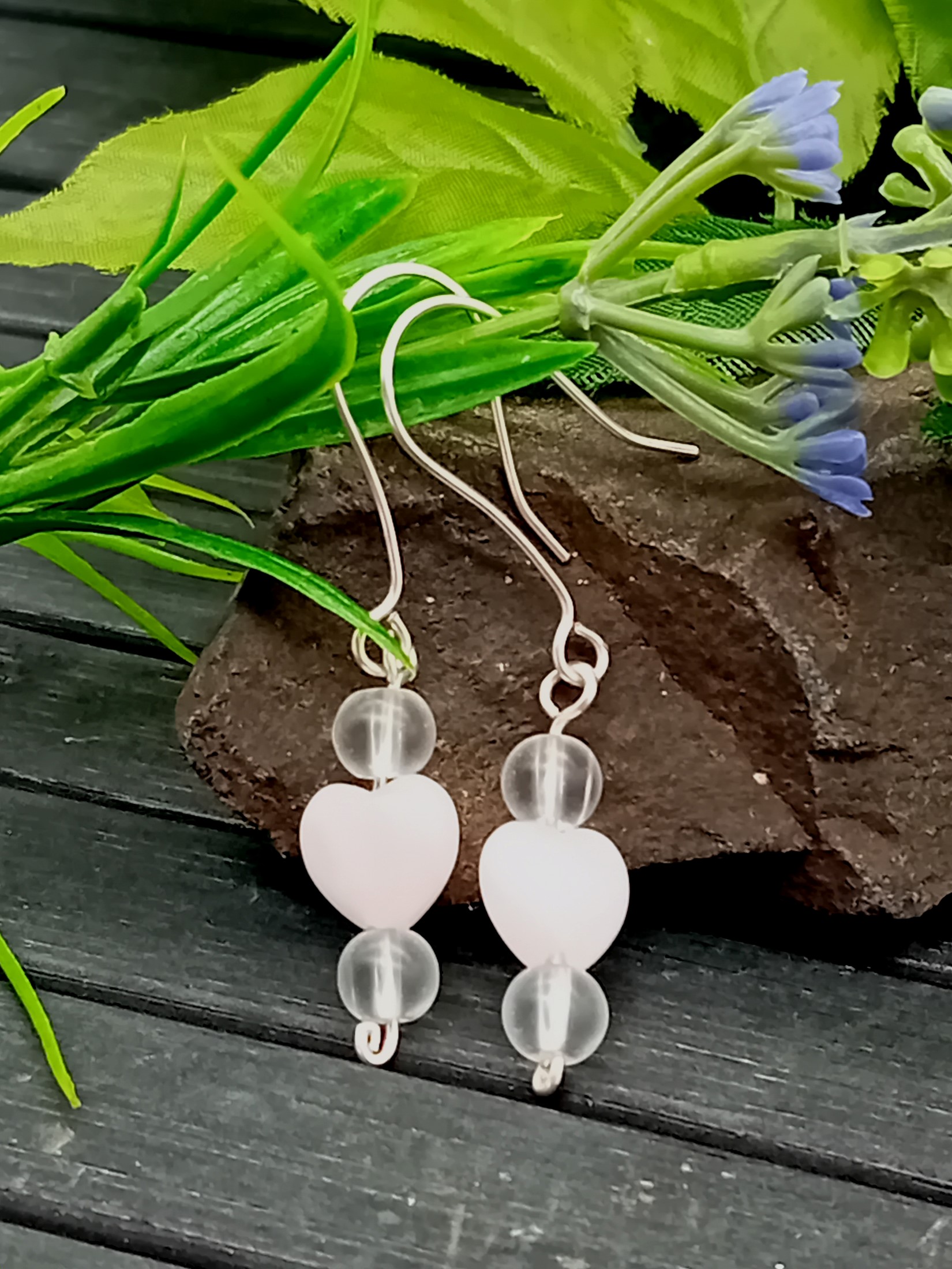 Ohrhänger Rosenquarz in Herzform 925 Silber