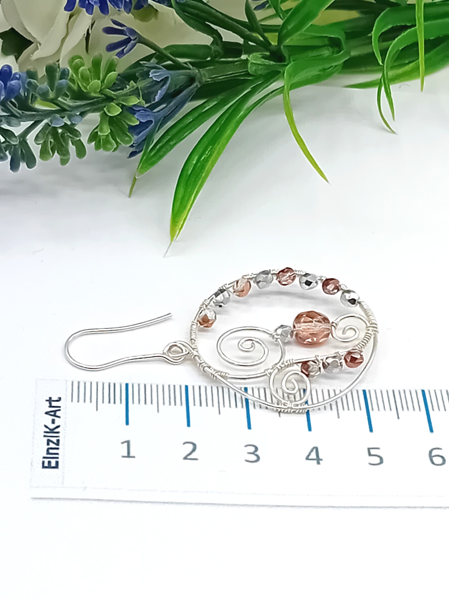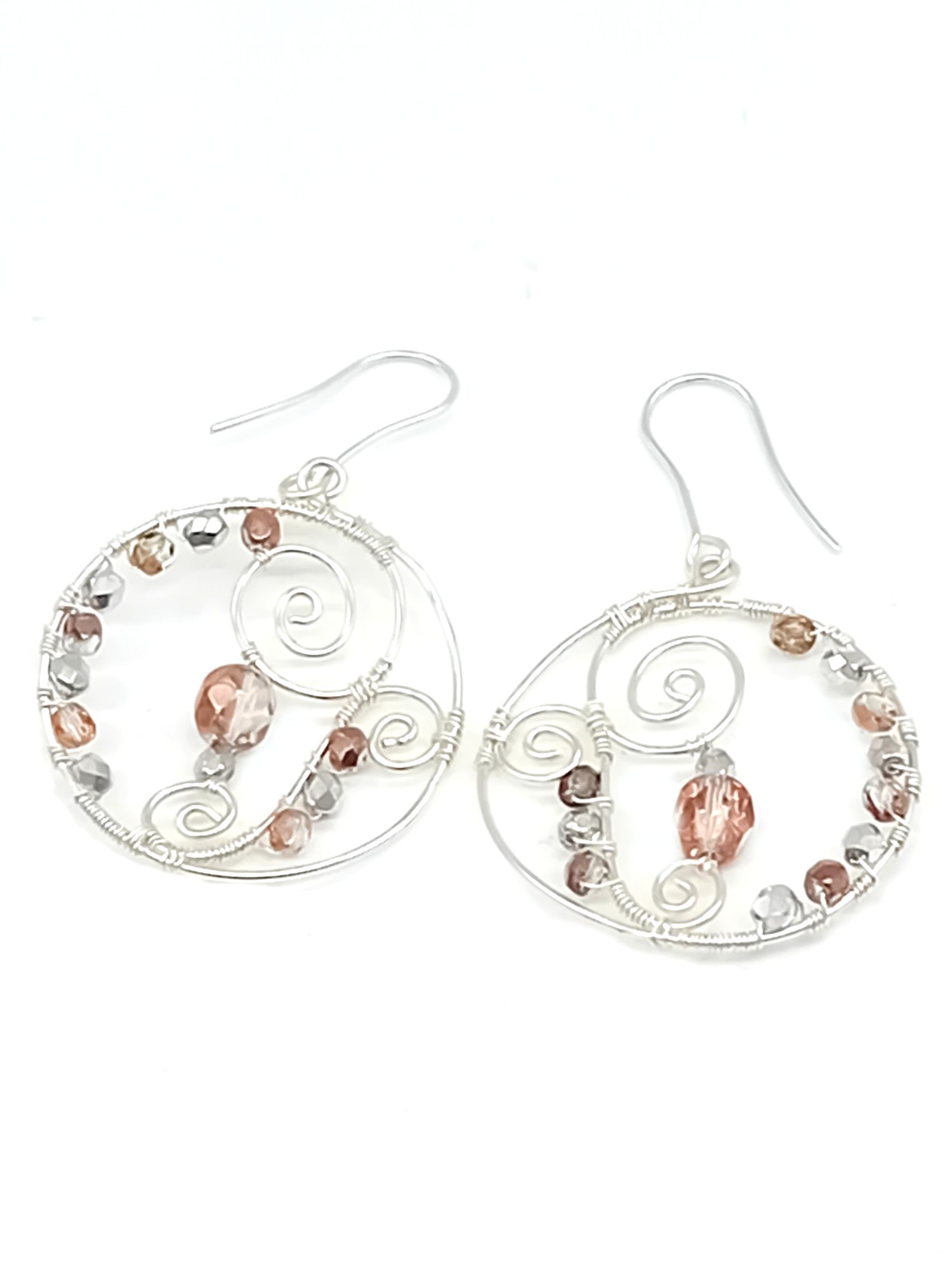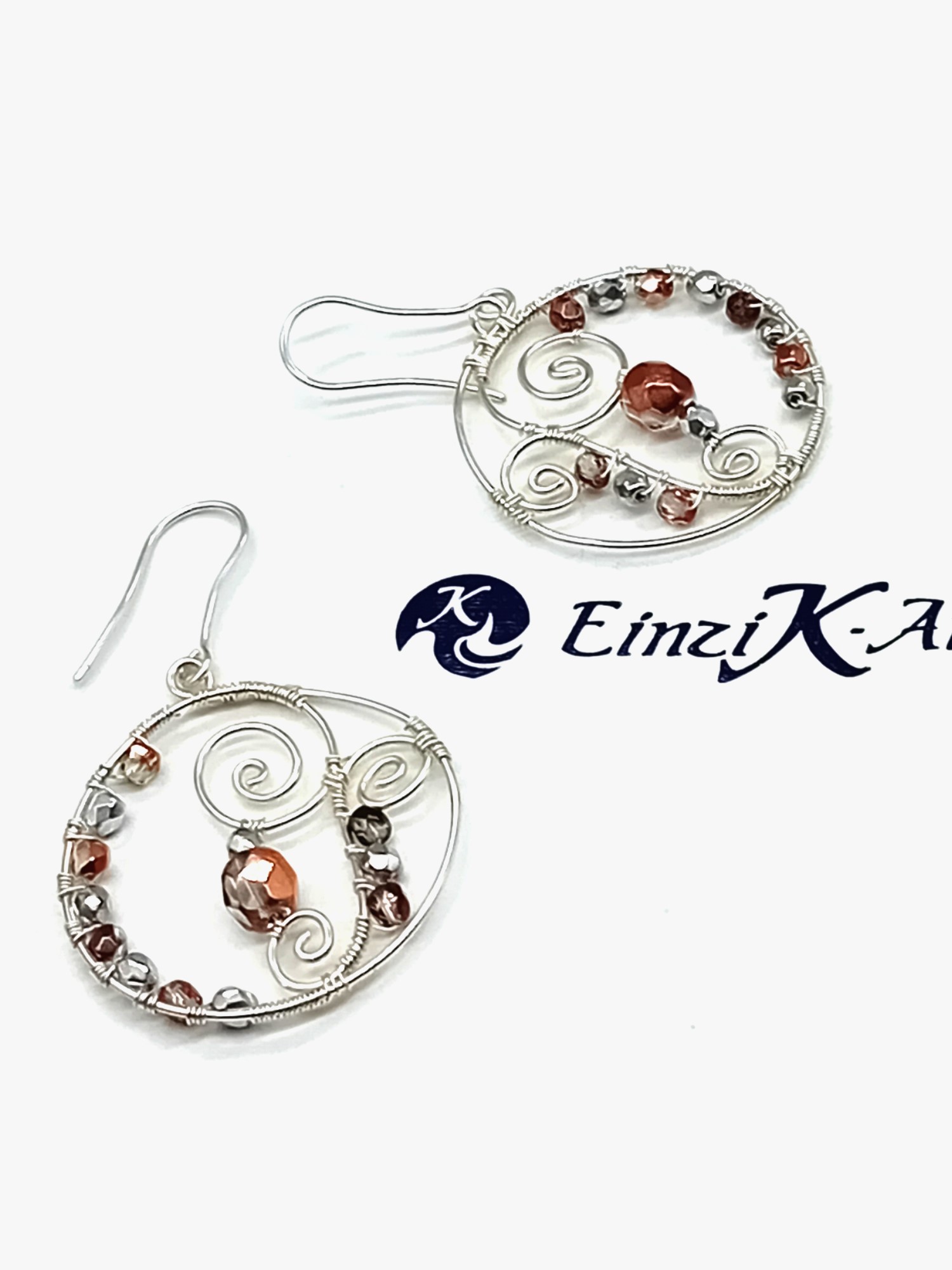 Diese handgearbeiteten Ohrhänger aus 925er Silber überzeugen durch ihre runde Form und eine kunstvolle Drahtwicklung. Die bernsteinfarbenen Glasperlen setzen warme, lebendige Akzente und verleihen den Ohrringen eine harmonische, zeitlose Ausstrahlung.