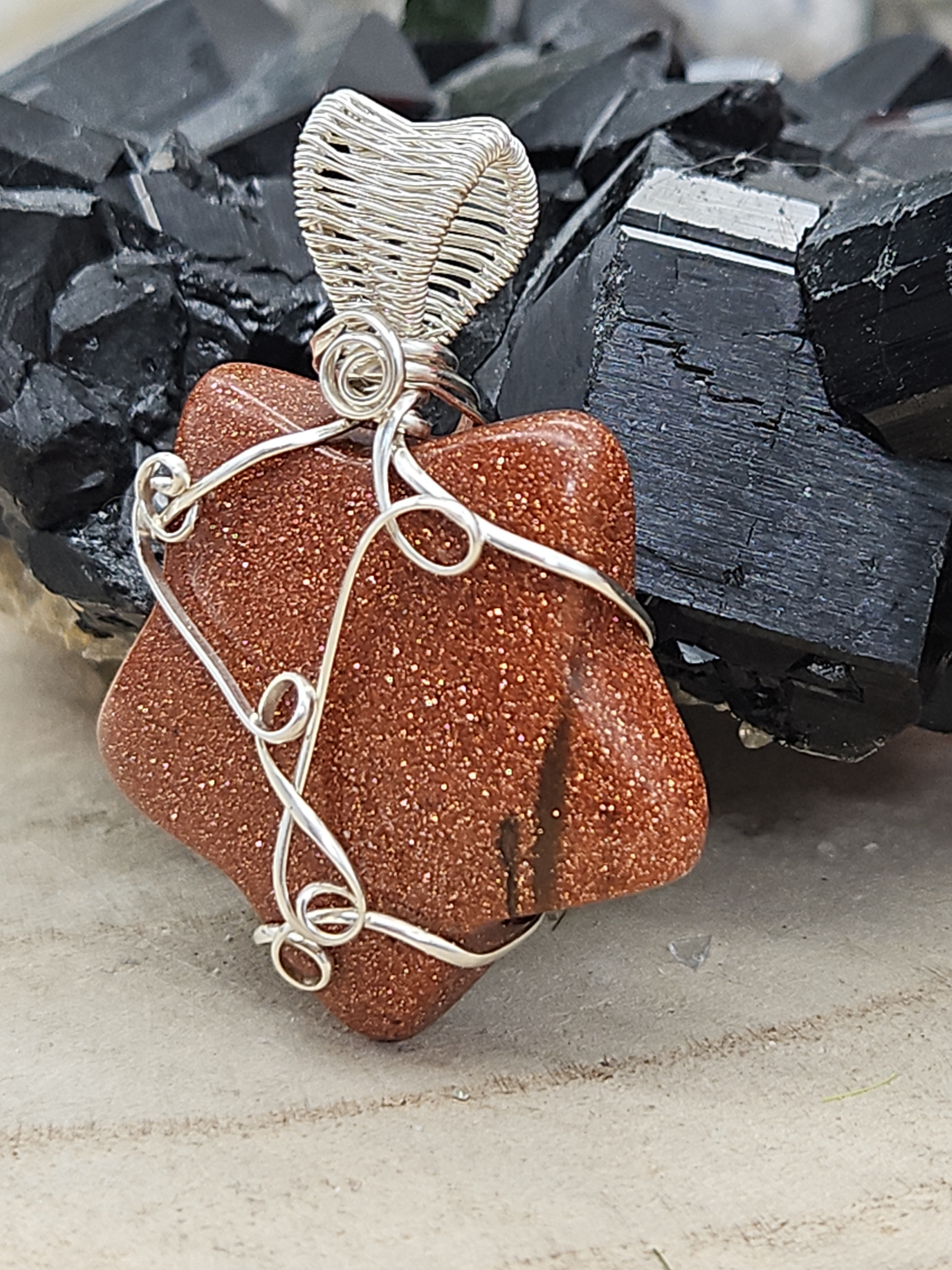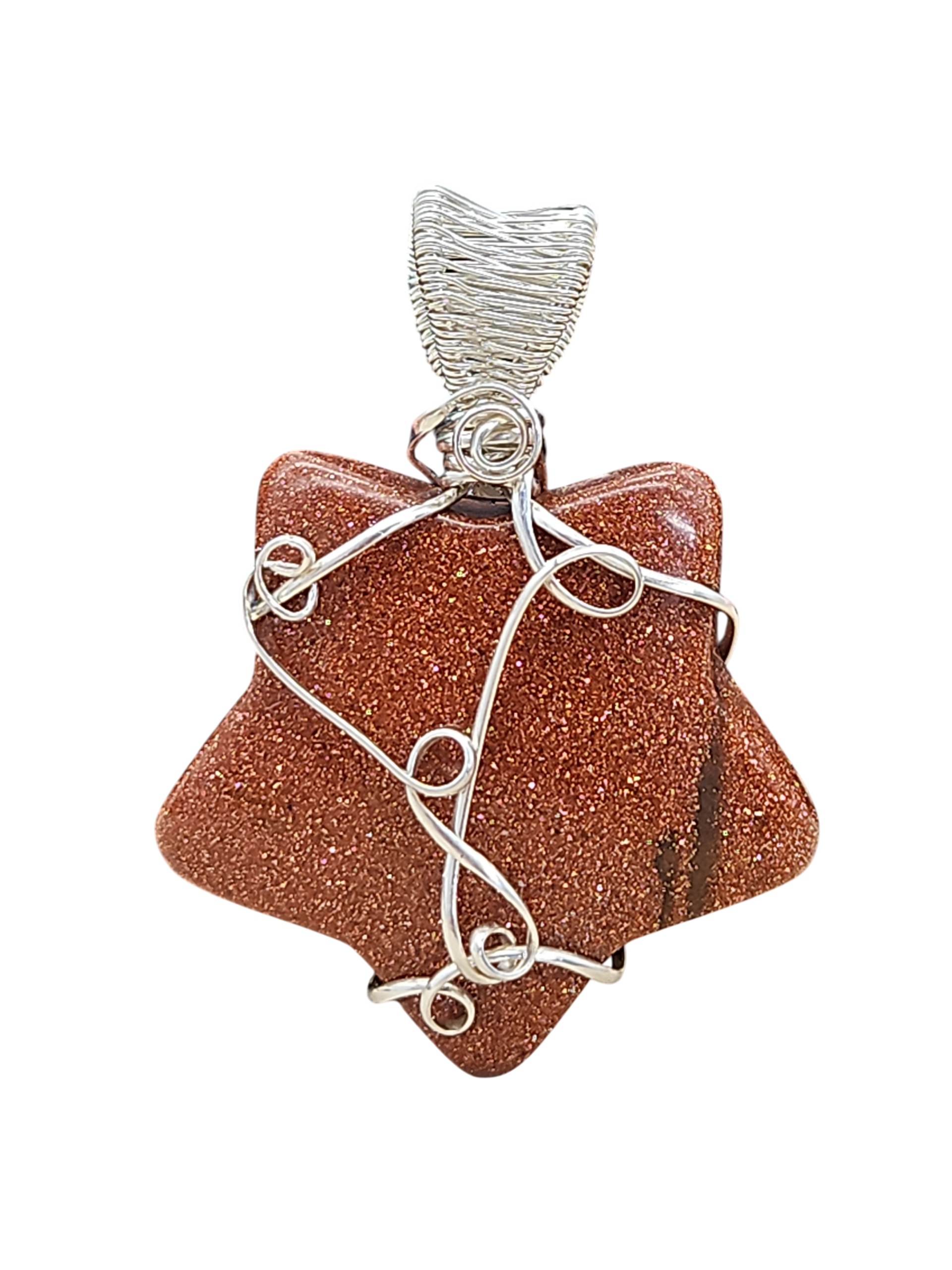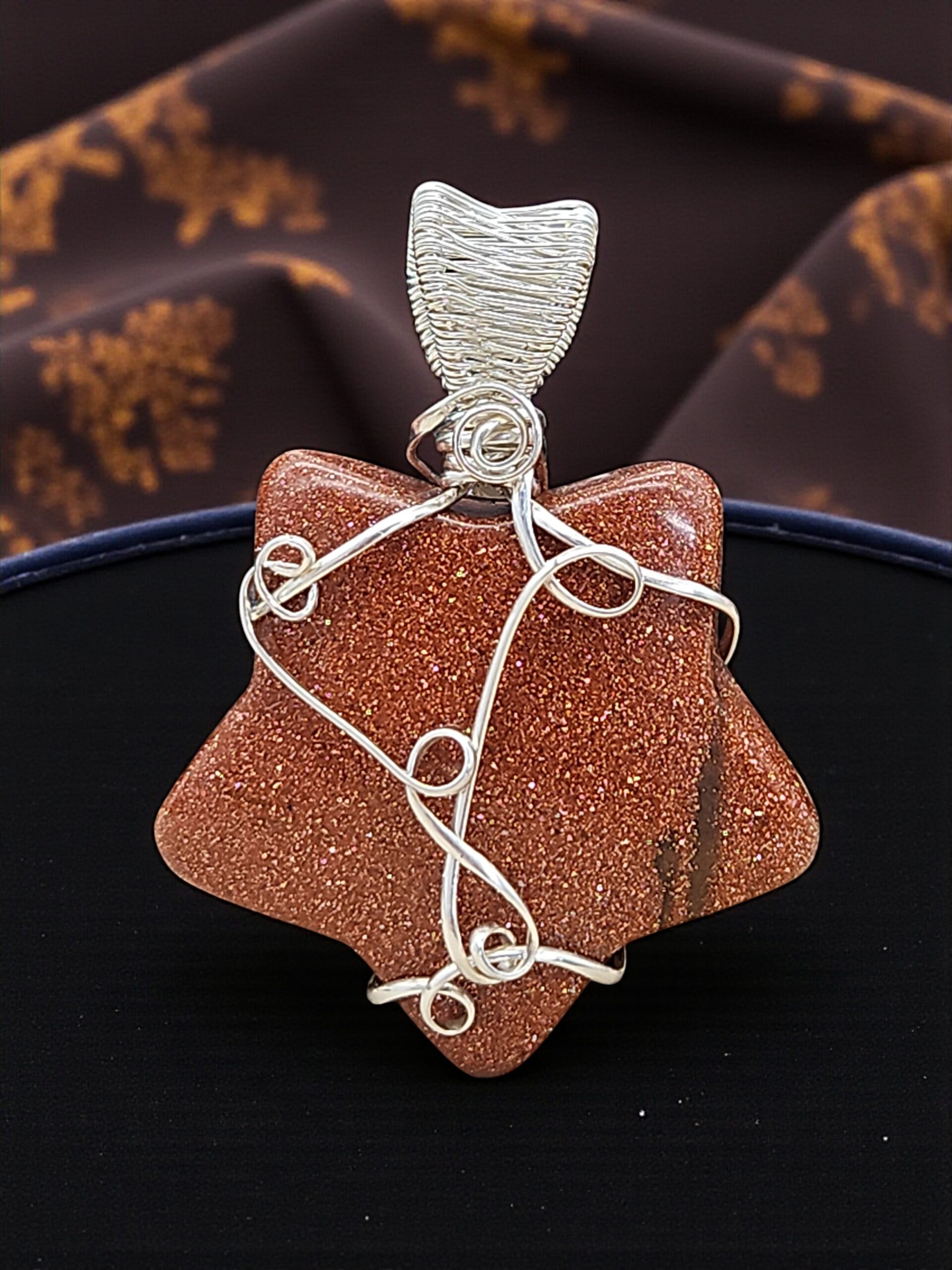 Funkelnder Stern aus Goldfluss, einem „Stein“, der eigentlich keiner ist. Er besteht aus Glas mit Kupfer/Kupferoxid und wird von Menschen hergestellt, kommt also nicht natürlich vor.